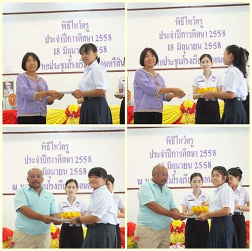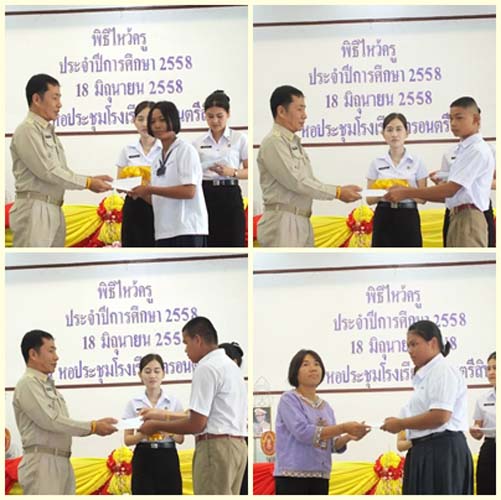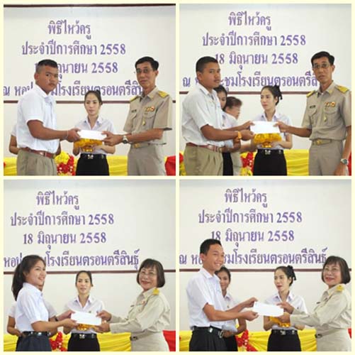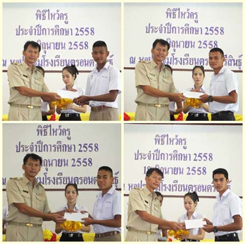 วันที่ 18 มิถุนายน 2558 ณ หอประชุมโรงเรียนตรอนตรีสินธุ์ จัดกิจกรรมวันไหว้ครู นายคำรณ ม่อมดี ผู้อำนวยการโรงเรียนตรอนตรีสินธุ์ เป็นประธาน เพื่อนักเรียนระลึกถึงพระคุณครูแสดงความกตัญญูรู้คุณต่อผู้ประสิทธิ์ประสาทวิชา ในกิจกรรมมีการทำบุญ ประกวดการจัดพานไหว้ครู การนั่งสมาธิ ปล่อยปลา การแสดงดนตรีไทย และมอบทุนการศึกษา ซึ่งมีหน่วยงานรัฐ หน่วยงานเอกชน ธนาคาร ศิษย์เก่าตรอนตรีสินธุ์ คณะกรรมการสถานศึกษา และชุมชน มอบทุนการศึกษา โดยนายคำรณ ม่อมดี ผู้อำนวยการโรงเรียนตรอนตรีสินธุ์ และคณะครูให้การต้อนรับแขกผู้มีเกียรติ