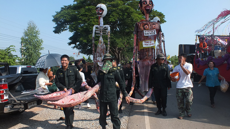 คณะครูและนักเรียน ร่วมจัดทำรถเทโว และร่วมขบวนแห่ ณ วัดวังแดง และวัดบ้านแก่งใต้