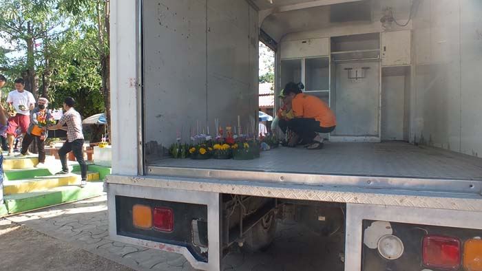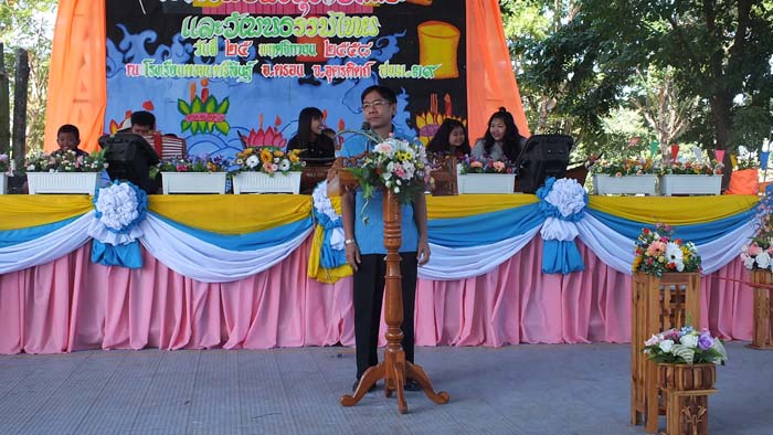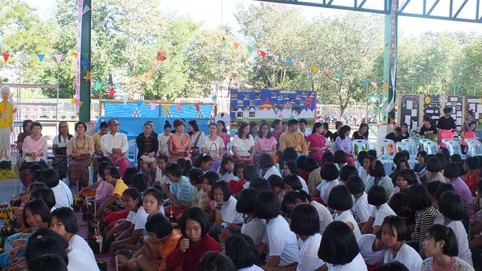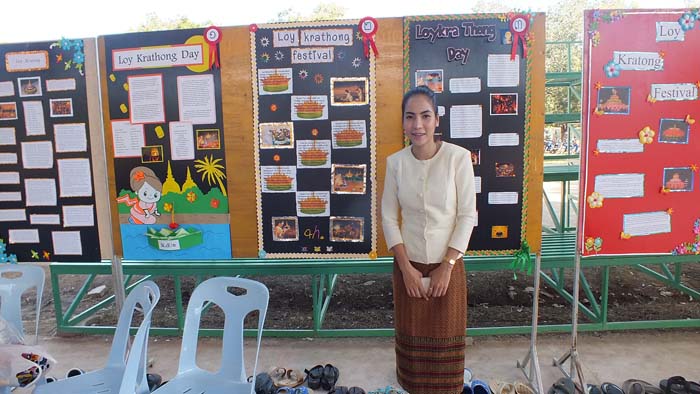 และนักเรียนทุกคนทำกระทงมาถวายให้กับวัดต่าง ๆ ในเขตอำเภอตรอน