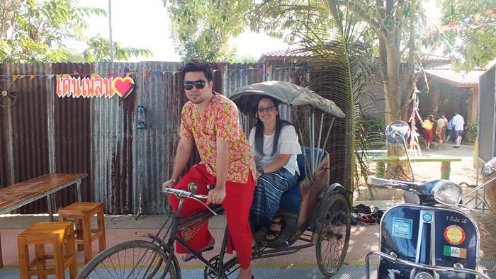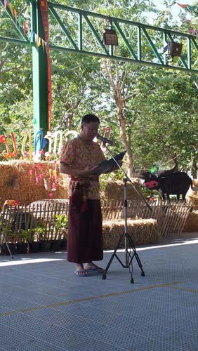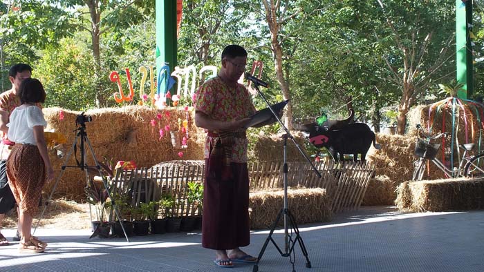 นางนพมาศแต่งกายโดยผ้าทอพื้นบ้านน้ำอ่าง กังหันลม การแต่งคำประพันธ์