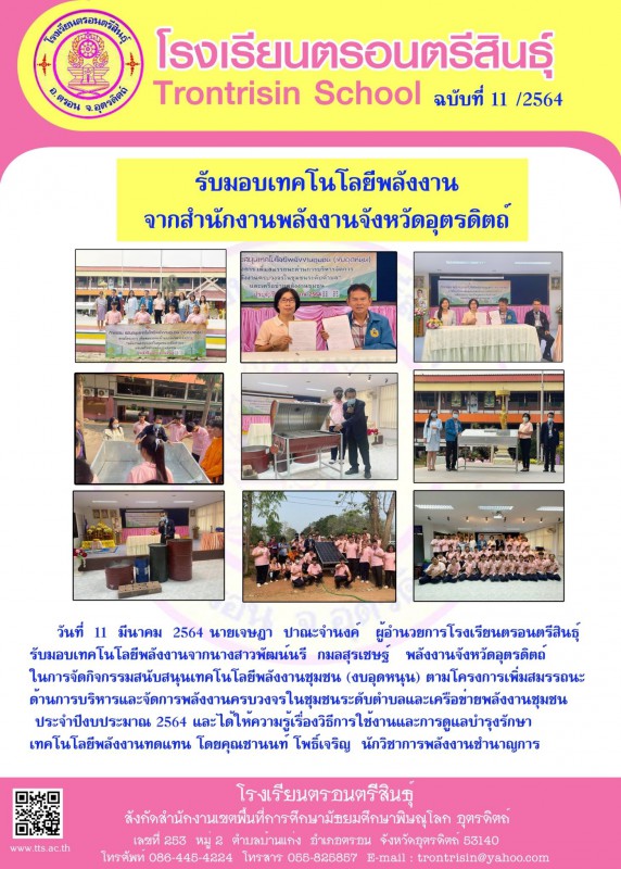 รับมอบเทคโนโลยีพลังงาน จากสำนักงานพลังงานจังหวัดอุตรดิตถ์
