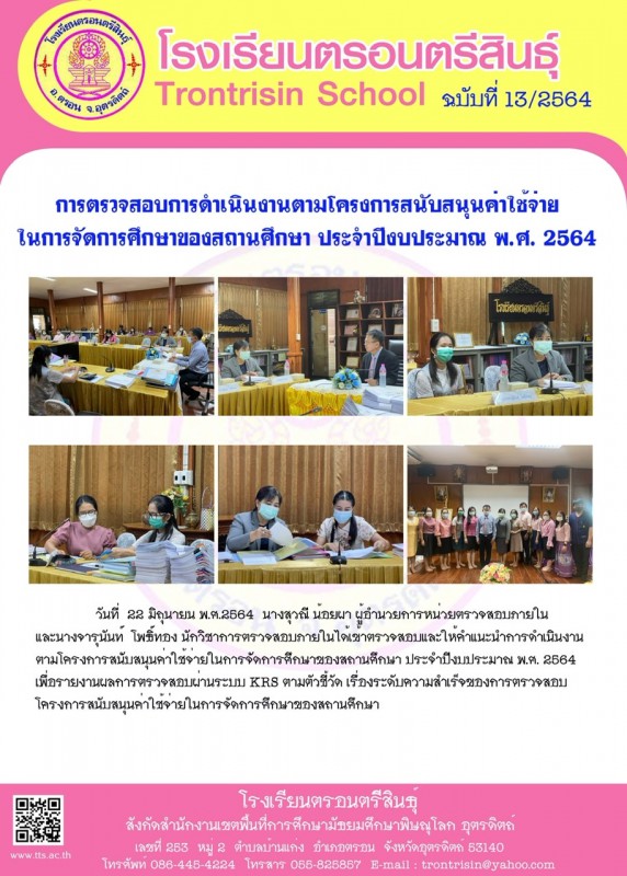 การตรวจสอบการดำเนินงานตามโครงการสนับสนุนค่าใช้จ่ายในการจัดการศึกษาของสถานศึกษา ประจำปีงบประมาณ 2564