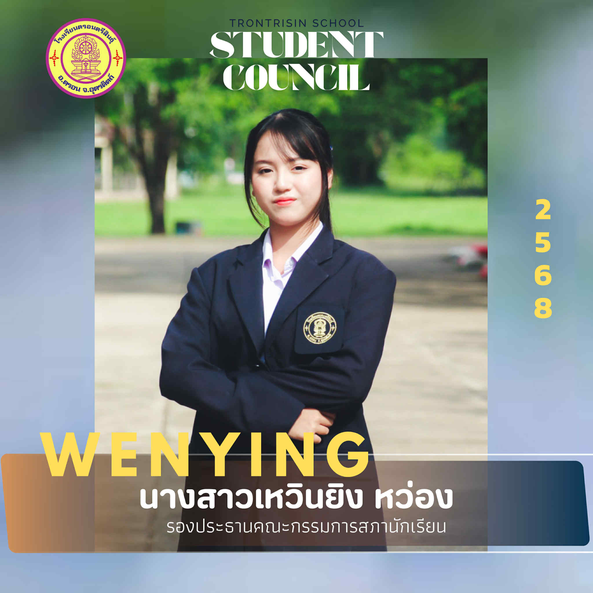 ชื่อ-นามสกุล : นางสาวเหวิงยิง หว่อง ตำแหน่ง : รองประธานคณะกรรมการสภานักเรียน ระดับชั้น : มัธยมศึกษาปีที่ 5