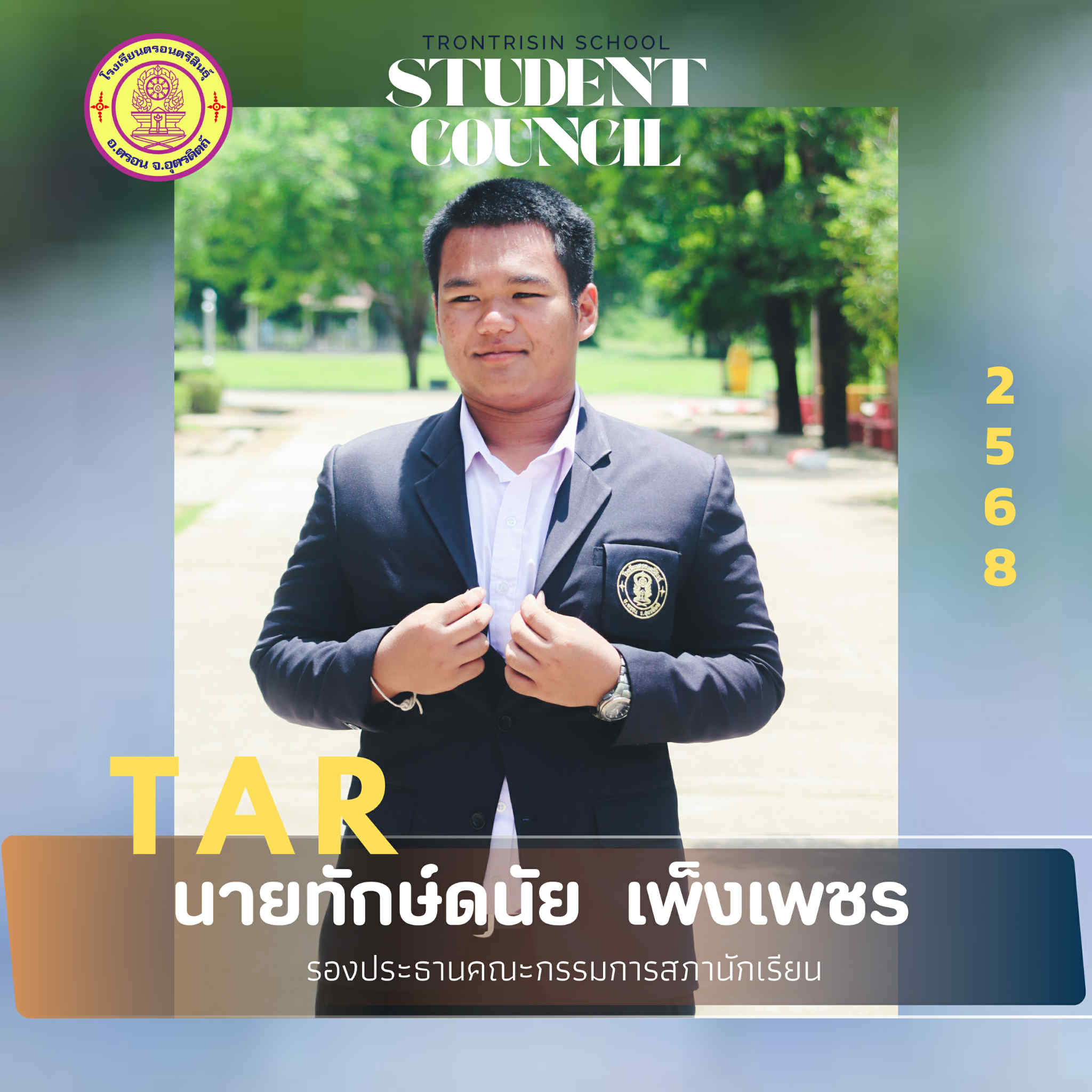 ชื่อ-นามสกุล : นายทักษ์ดนัย เพ็งเพชร ตำแหน่ง : รองประธานคณะกรรมการสภานักเรียน ระดับชั้น : มัธยมศึกษาปีที่ 5