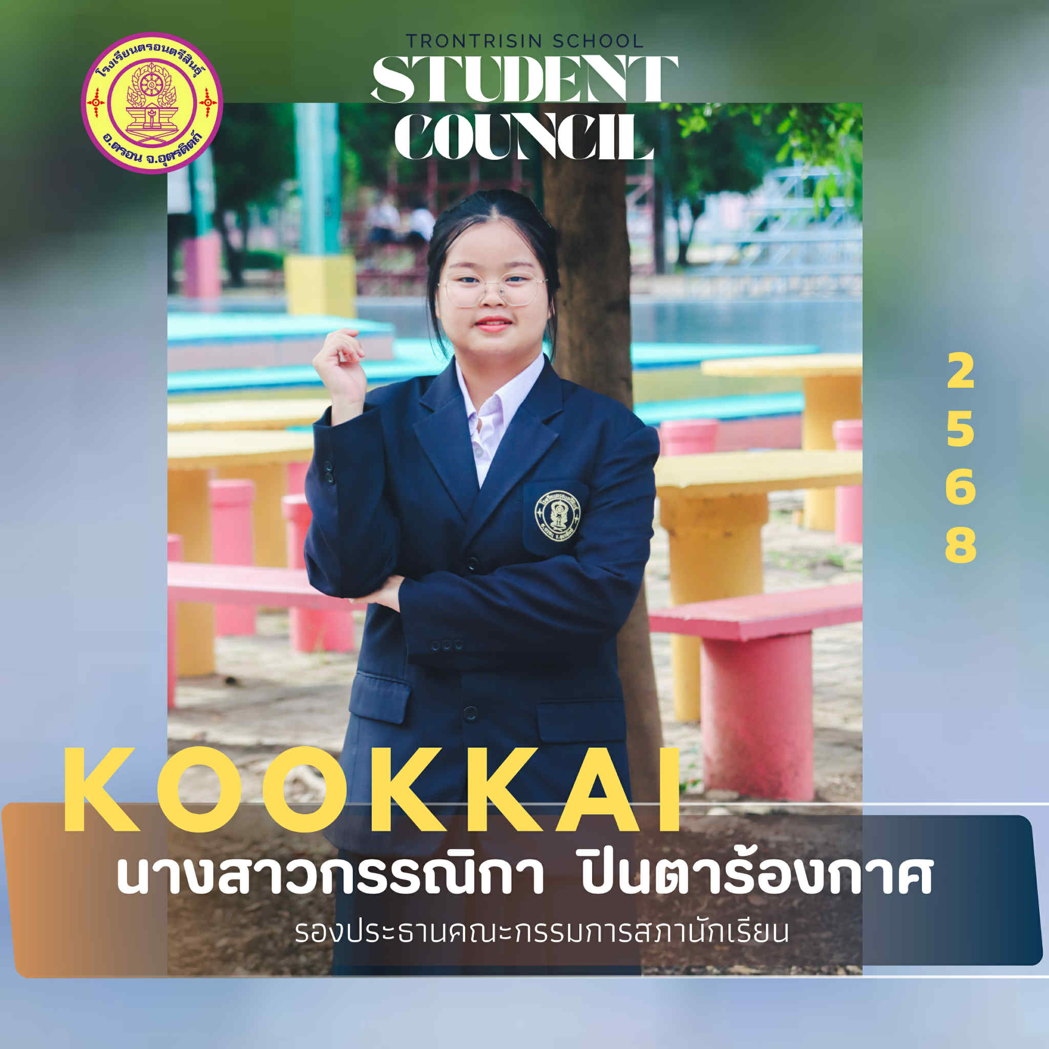 ชื่อ-นามสกุล : นางสาวกรรณิกา ปินตาร้องกาศ ตำแหน่ง : รองประธานคณะกรรมการสภานักเรียน ระดับชั้น : มัธยมศึกษาปีที่ 5